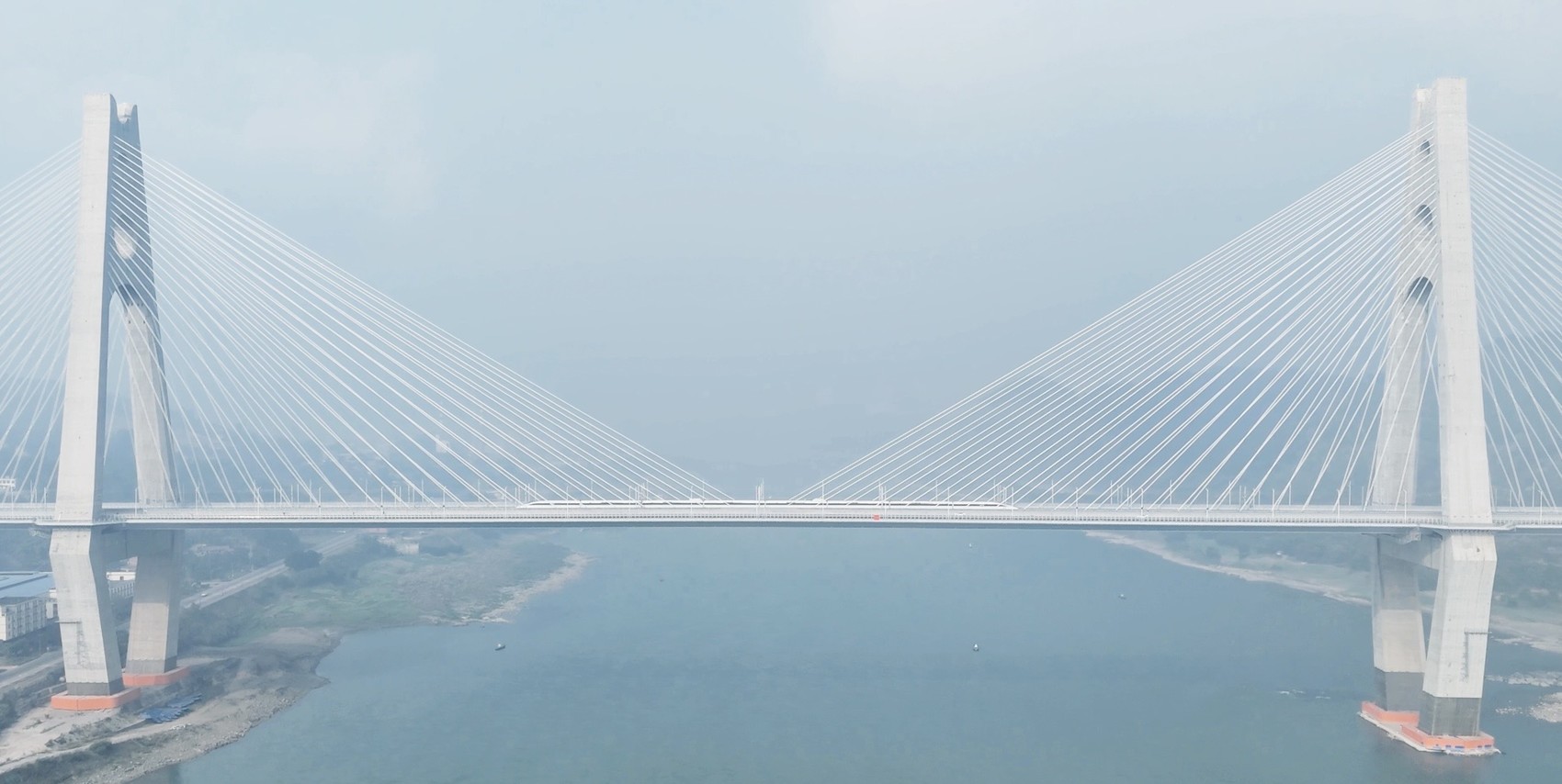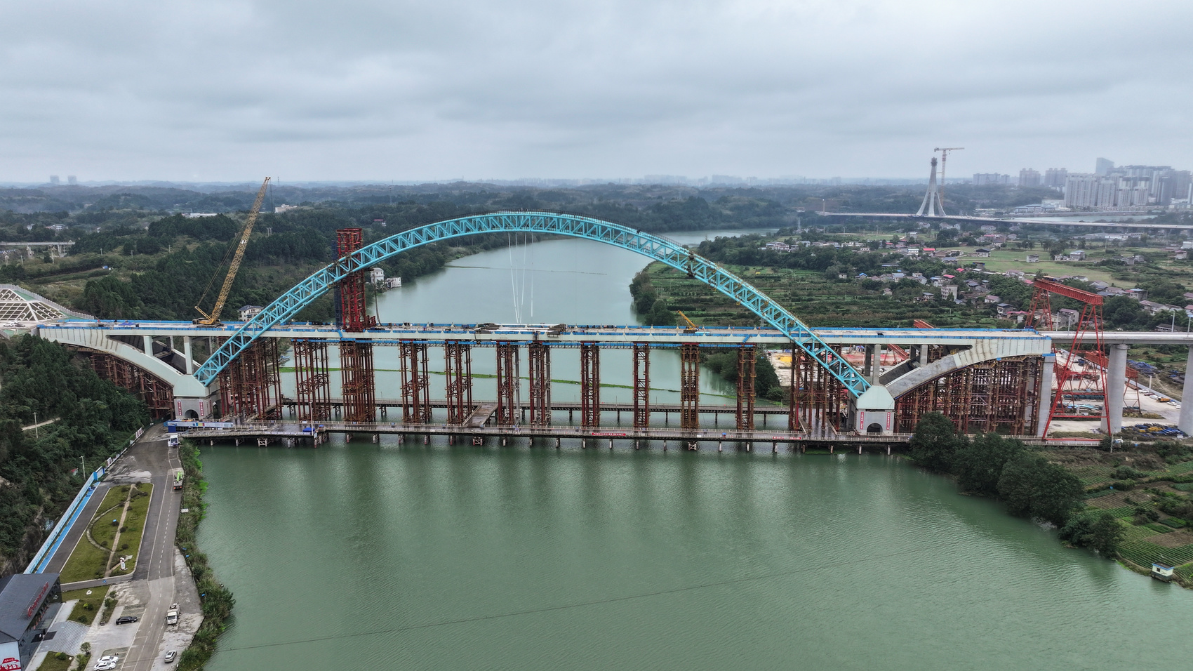 成渝中线高铁四川段沱江特大桥合龙场景